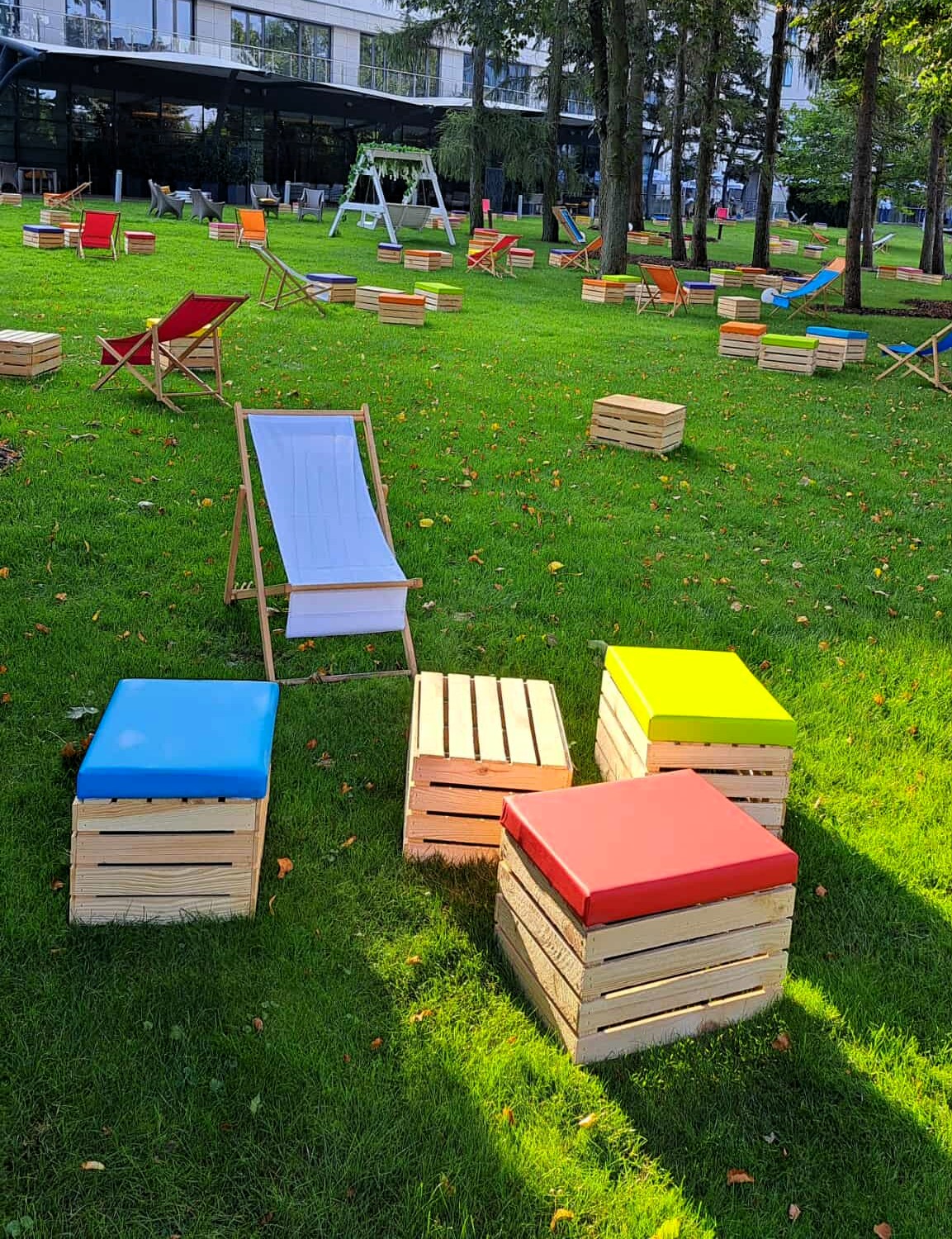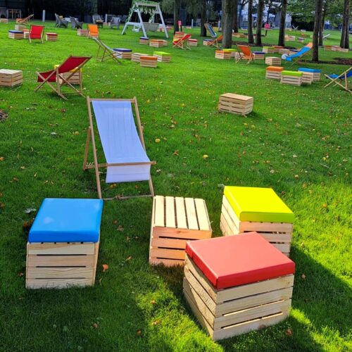 Dostępne są dwie wersje podstawy – naturalne drewno lub biel – co pozwala łatwo dopasować mebel do aranżacji eventowej. Crop Blue świetnie sprawdza się na targach plenerowych, koncertach miejskich, eventach firmowych, piknikach, strefach chillout oraz promocyjnych wydarzeniach outdoorowych.