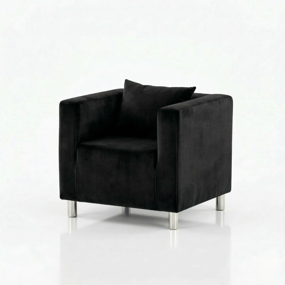 FOTEL CUBO VELVET BLACK to kwintesencja nowoczesnej elegancji i uniwersalnego designu. Głęboka, welurowa czerń nadaje przestrzeni luksusowego charakteru, a jednocześnie stanowi idealną bazę do różnorodnych aranżacji – od minimalistycznych po wyrafinowane realizacje w stylu glamour.