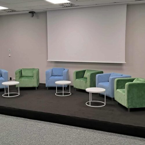 Wynajem zielonego Fotela Cubo Velvet Pistachio Green prowadzimy wyłącznie z naszym transportem i montażem.