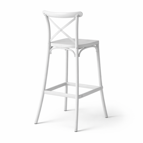 Charakterystyczne oparcie z krzyżowym detalem oraz smukła konstrukcja sprawiają, że hoker prezentuje się subtelnie, a jednocześnie bardzo efektownie. Wygodne siedzisko i praktyczny podnóżek zapewniają komfort użytkowania, dzięki czemu świetnie sprawdzi się zarówno podczas krótkich spotkań, jak i dłuższych eventów.