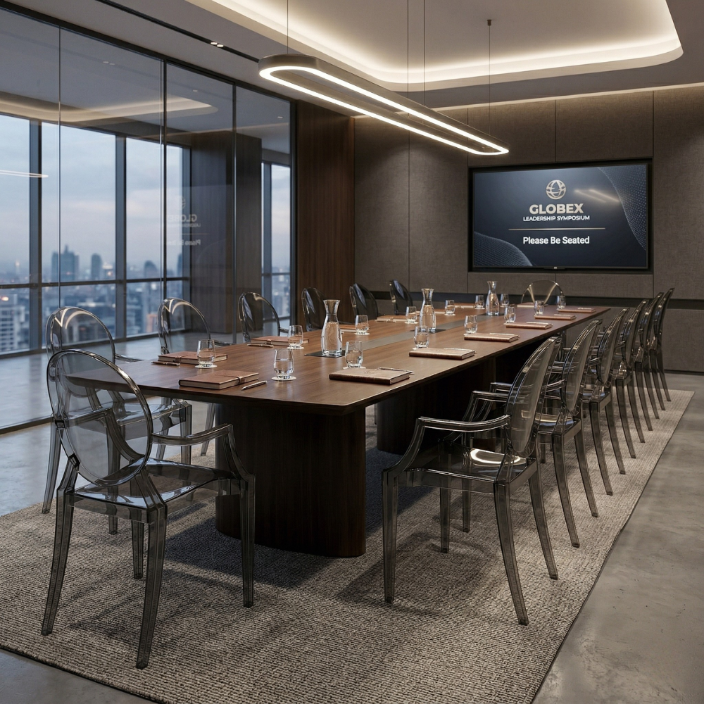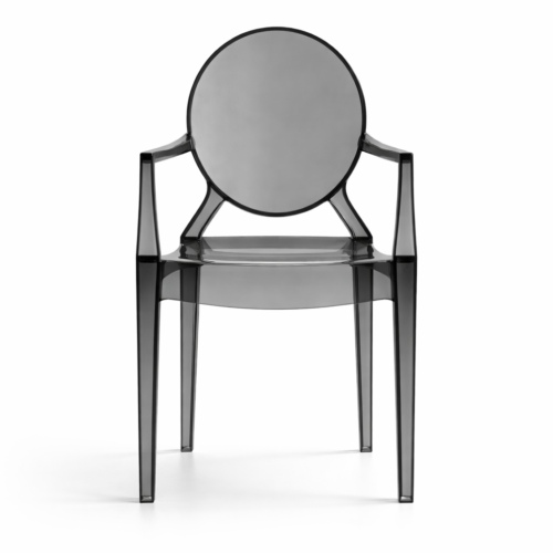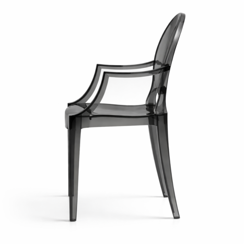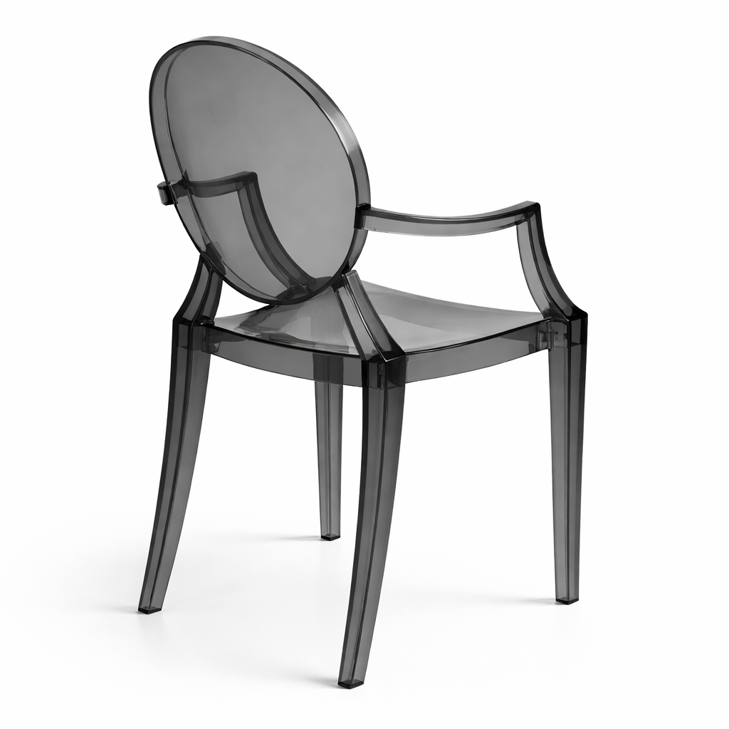 KRZESŁO PRINCE SHADE to wyjątkowe połączenie klasycznej formy z nowoczesnym, designerskim wykończeniem. Transparentna, przydymiona konstrukcja nadaje mu lekkości wizualnej, jednocześnie wprowadzając do przestrzeni elegancki, nieco futurystyczny charakter.