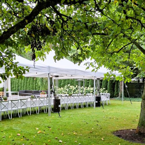 Ekskluzywny wygląd, który idealnie sprawdza się na eventach premium, a wbudowane kółka przy podstawie umożliwiają łatwe przemieszczenie parasola w dowolne miejsce.