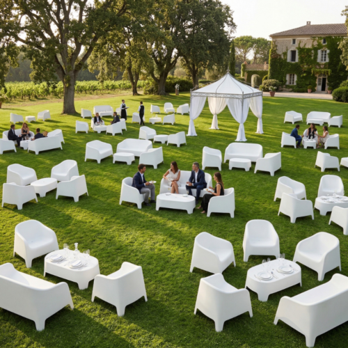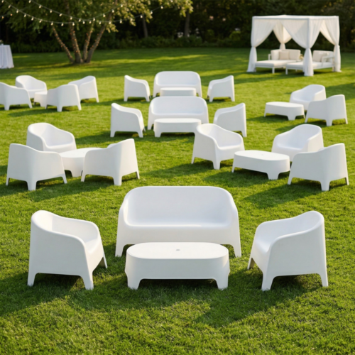 Dużym atutem stolika CLOUD jest jego wysoka dostępność – aż 100 sztuk, co pozwala na realizację nawet bardzo dużych wydarzeń w spójnej stylistyce.
